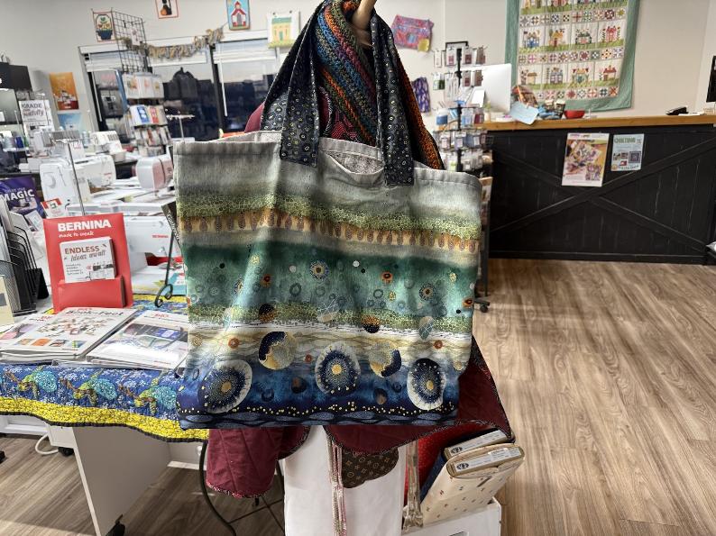 A kit that includes the tote panel and fabric is included in the class fee. You may buy the other panel for a 10% discount on the day of class while supplies last. Please call the shop at 972-955-7444 and let us know which of the two panels you choose for the class after you complete registration.