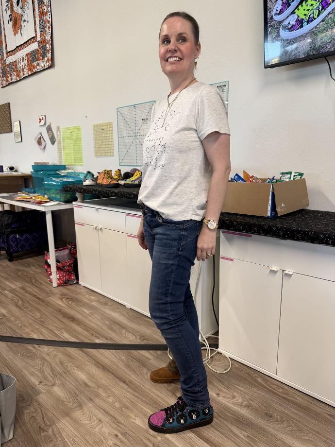 Ready to make your own unique, one-of-a-kind quilted sneakers?! Choose your fabrics to reflect your personal style or make a statement! Class will include a full day of step-by-step instructions. You will cut and finish your quilted components, install eyelets, and use traditional shoemaking techniques to attach your beautiful, quilted uppers to high-quality sneaker soles . Items provided are pattern, needle, wax thread and setting tools.